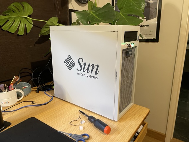 The original Sun Ultra 24 (as far as I can tell) shipped with a black DVD drive which doesn’t quite fit with the aesthetic but in the interests of ‘originality’ I sourced a used drive from eBay. I was keen to get one that was plain black with no white text on it to achieve the original look.